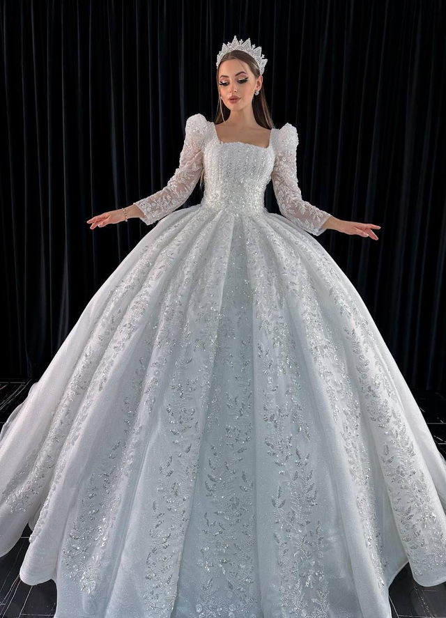 Robe de Mariée Princesse avec Paillettes Manche Longues / Réf : RMP07