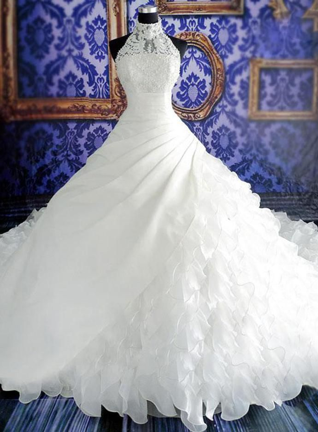 Robe de Mariée Princesse Brillante Col Bijou Jupe Bouffante Longue Traine / Réf : RMP02