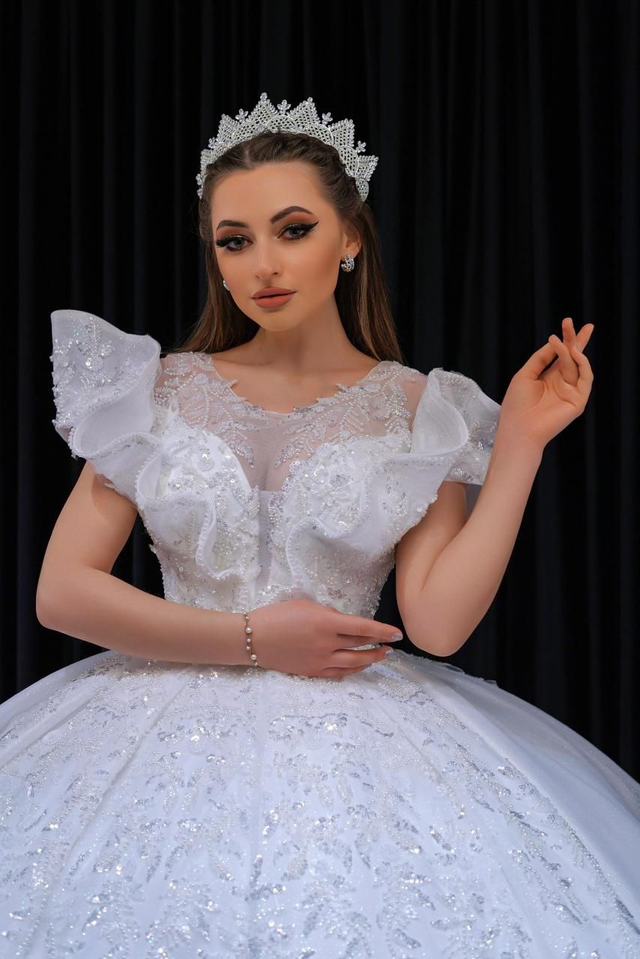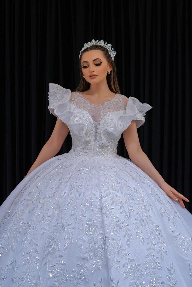 Robe de Mariée Princesse Col Coeur Décolleté Manches Courtes / Réf : RMP10