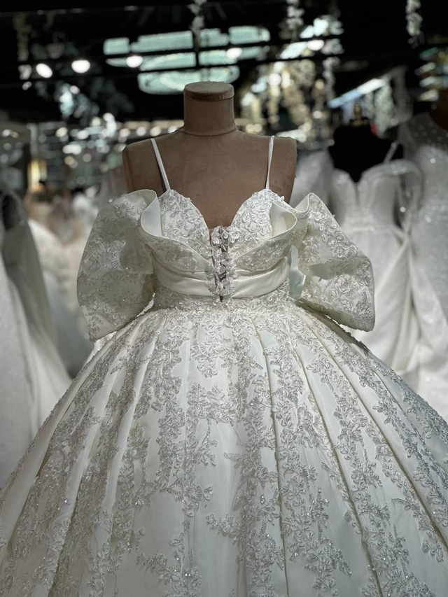Robe de Mariée Princesse Col V Épaules effet Dénudés Motifs Fleurs / Réf : RMP31
