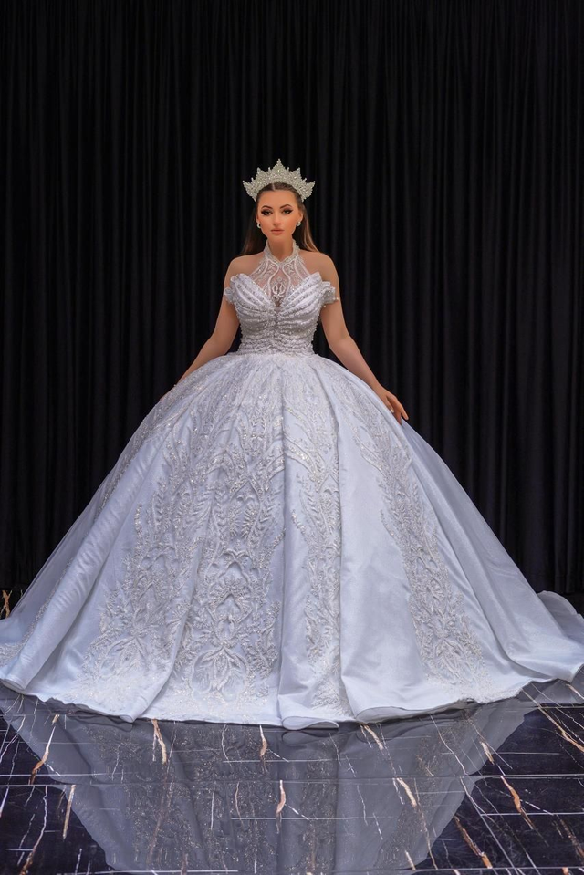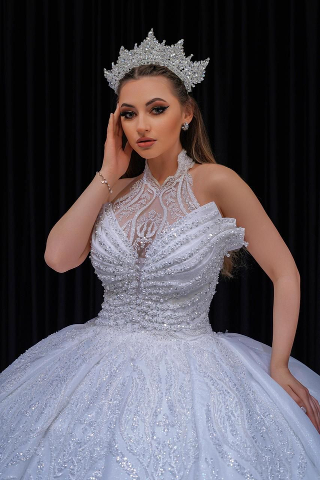 Robe de Mariée Princesse Luxury Col Bijou avec Paillettes / Réf RMP09