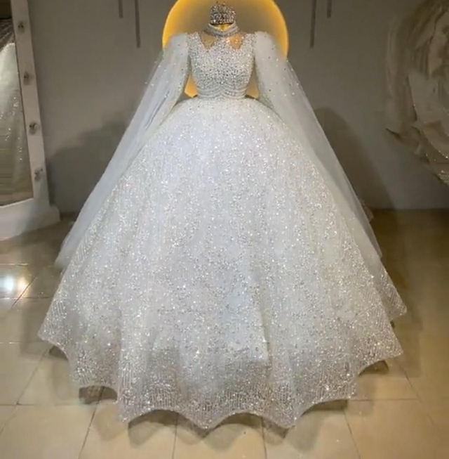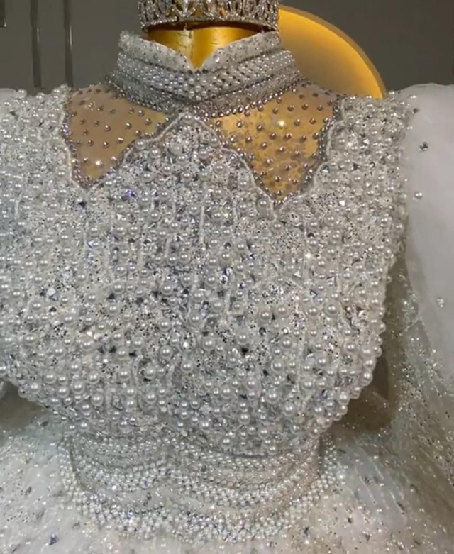 Robe de Mariée Princesse Luxury Handmade Brodée en Diamant