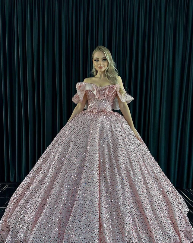 Robe de Mariée Princesse Rose Barbie avec Paillettes Épaules Dénudés / Réf : RMP32