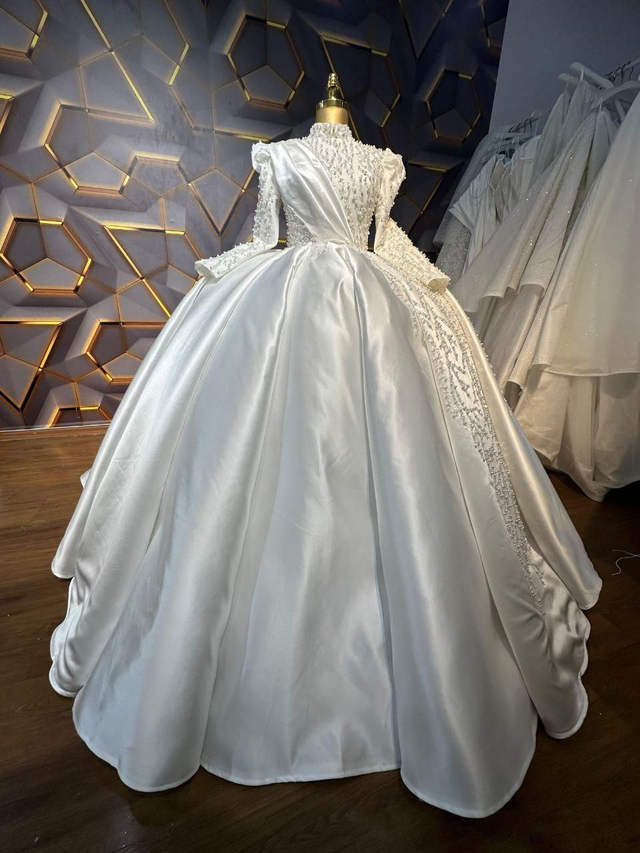 Robe de Mariée Sirène Col Bateau Manches en Perlée et Brodée / Réf : RMS84