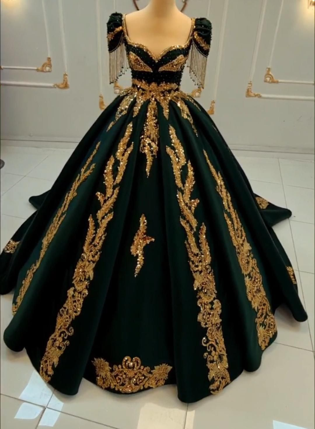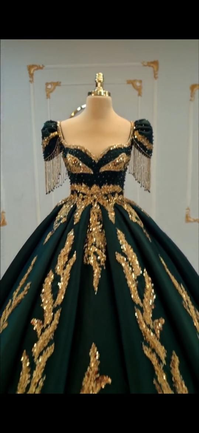 Robe de Mariée Princesse Vert et Doré Luxury Col Coeur / Réf : RMP67