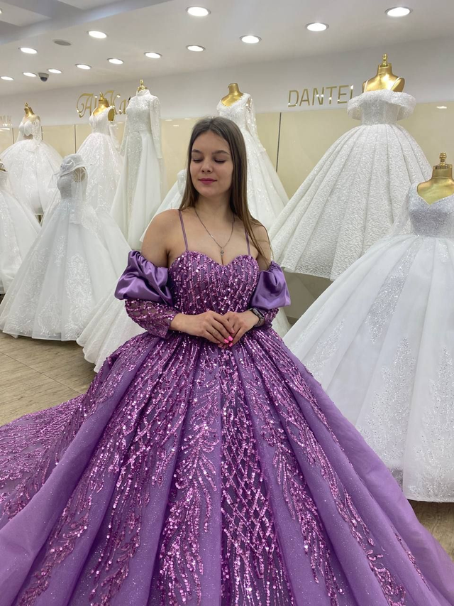Robe de Mariée Princesse Violet avec Paillettes Col Coeur Épaules effet Dénudés / Réf : RMP52
