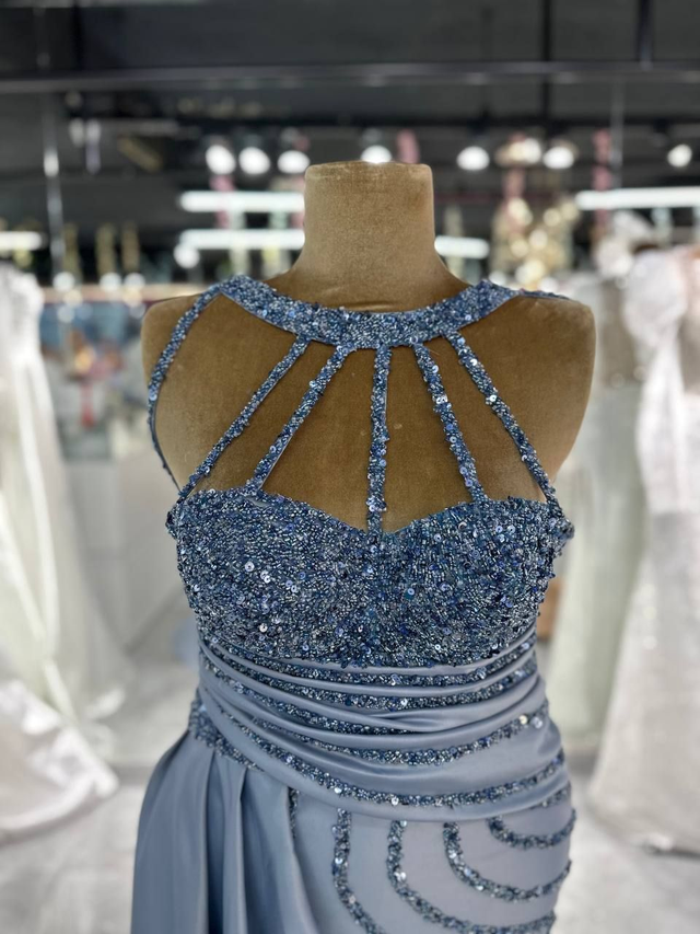 Robe de Mariée Sirène Col Américain en Satin et Strass / Réf : RMS43