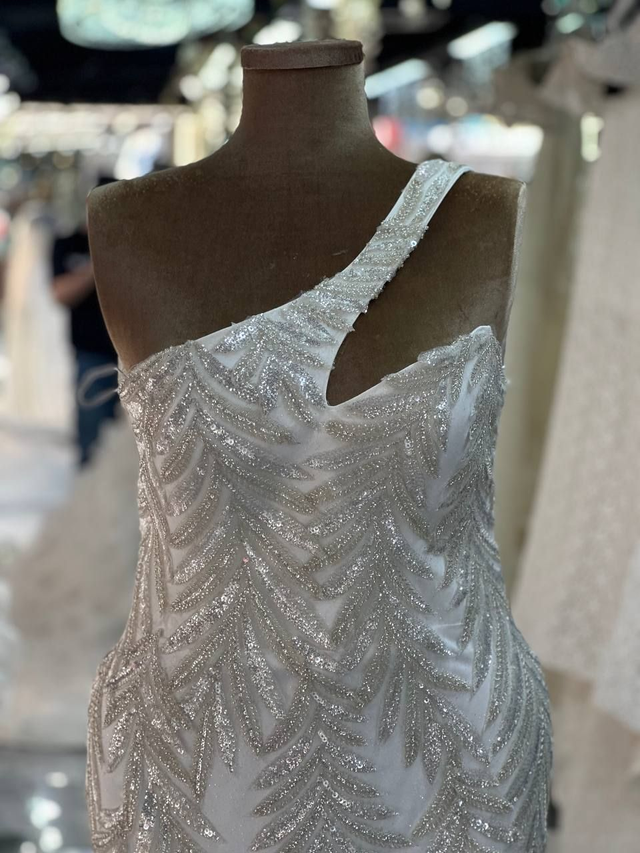 Robe de Mariée Sirène Col Asymétrique en Strass et Tulles / Réf : RMS38