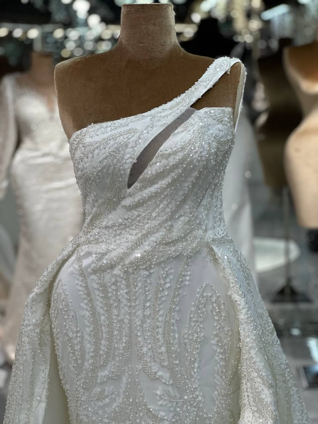 Robe de Mariée Sirène Col Asymétrique en Strass / Réf : RMS28