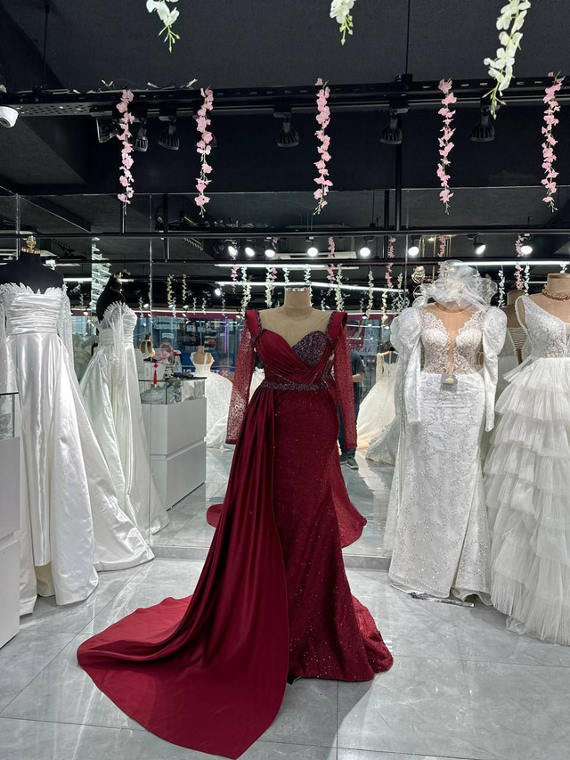 Robe de Soirée Violet Mauve Manches longues avec Paillettes / Réf : RMSR04