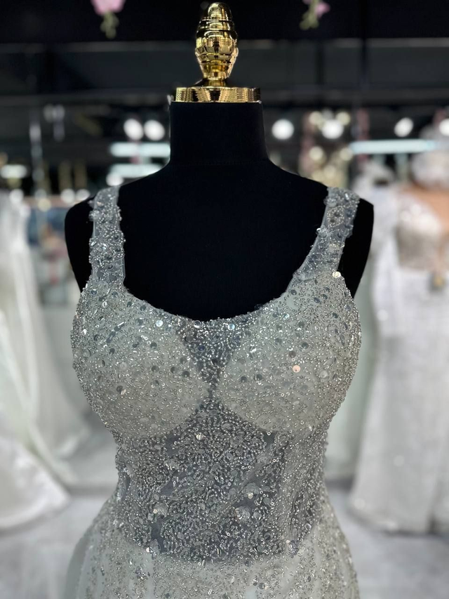 Robe de Mariée Sirène Col Droit à Paillettes / Réf : RMS42