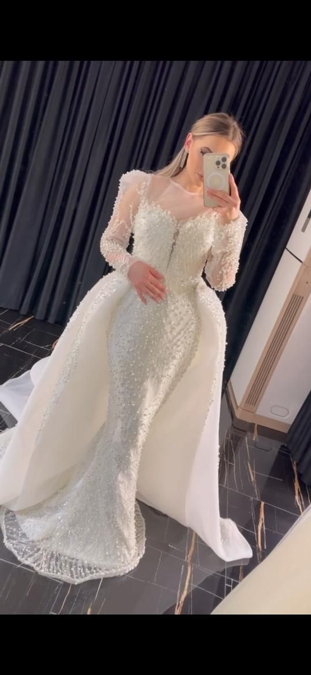 Robe de Mariée Sirène Col Bateau en Perles / Réf : RMS13