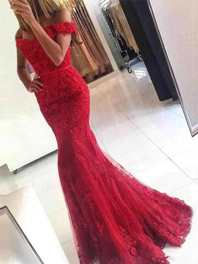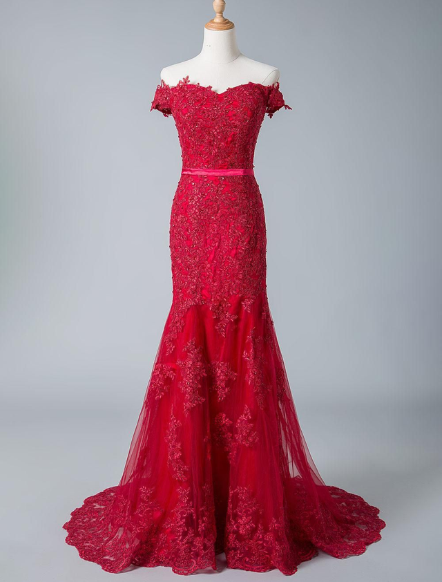 Robe de Soirée Dentelle Épaules Dénudés / Réf : RMSR01