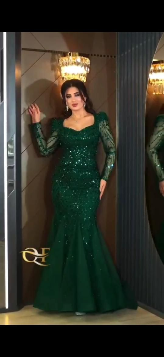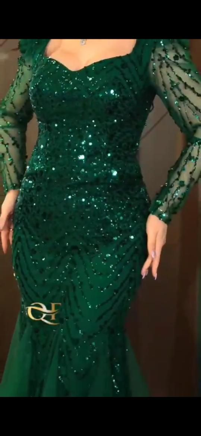 Robe de Soirée Vert Foncé Manches longues avec Paillettes / Réf : RMSR06