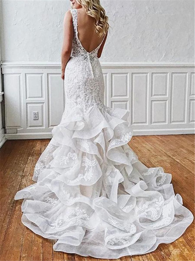 Robe de Mariée Sirène Col V Brodée / Réf : RMS03